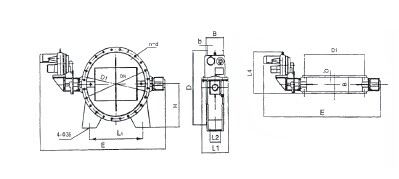 | DN | D | D1 | B | b | n—d | E | H | L1 | L2 | L3 | L4 | 電動執(zhí)行器 | 電動功率 | 重量(kg) | |